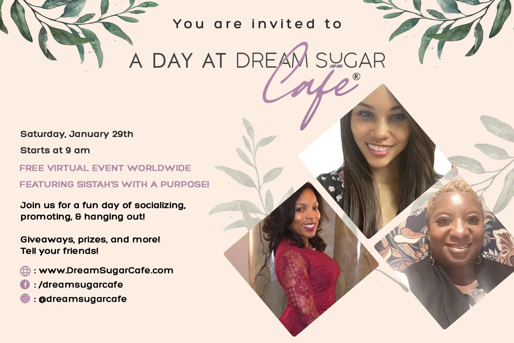 Dream Sugar Cafe holds a monthly meeting on Zoom to discuss upcoming events, products, or services. This is also an opportunity for the Dream Squad (Dreamgirls & Dreamyguys) to talk about what their needs are and to network.